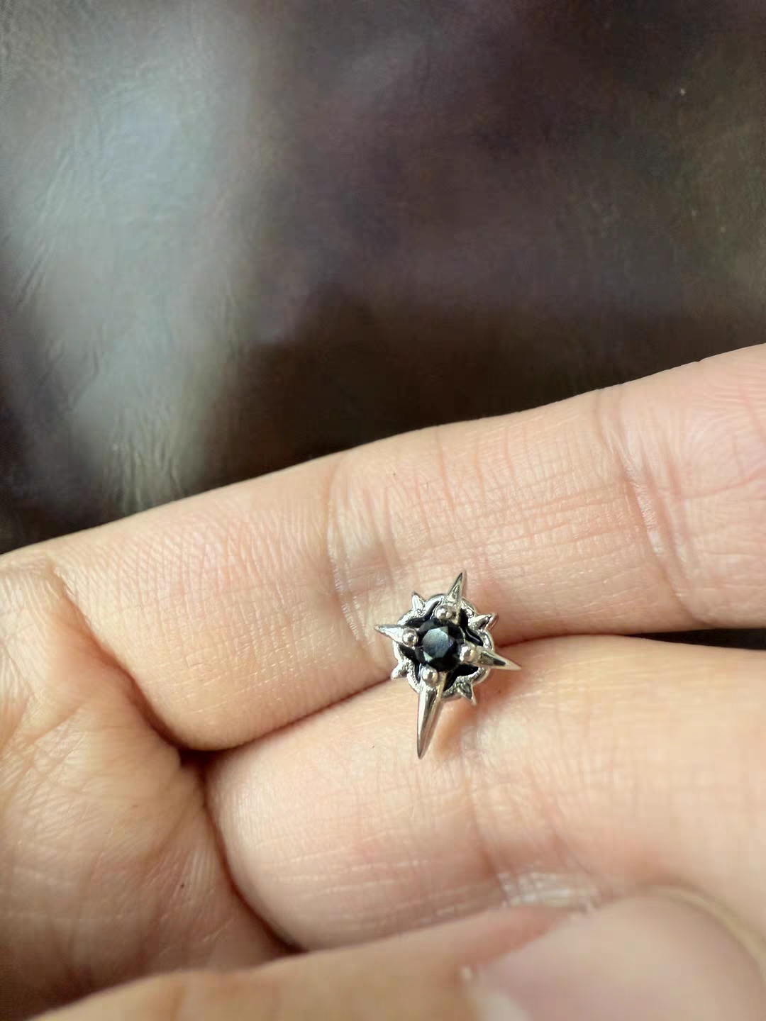 The black stone is deep, like staring into a midnight lake, and the silver spikes catch the light like shards of broken stars. ⭐ It’s not just an earring—it’s a little piece of the dark, the quiet, the parts of me I don’t always show.