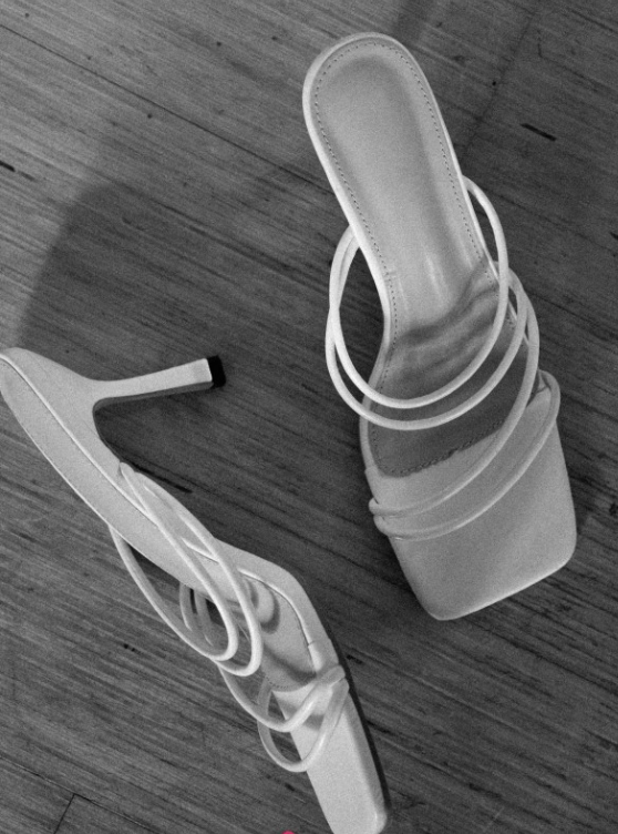 white scrappy sandals with a 3″ heel. worn to the club on many occasions